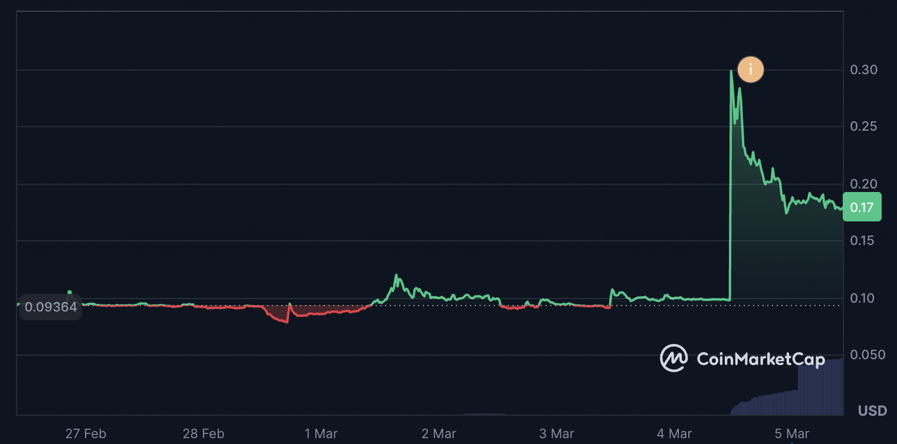 Цена Definitive (EDGE) выросла на 90% за 24 часа | Источник: Coinmarketcap